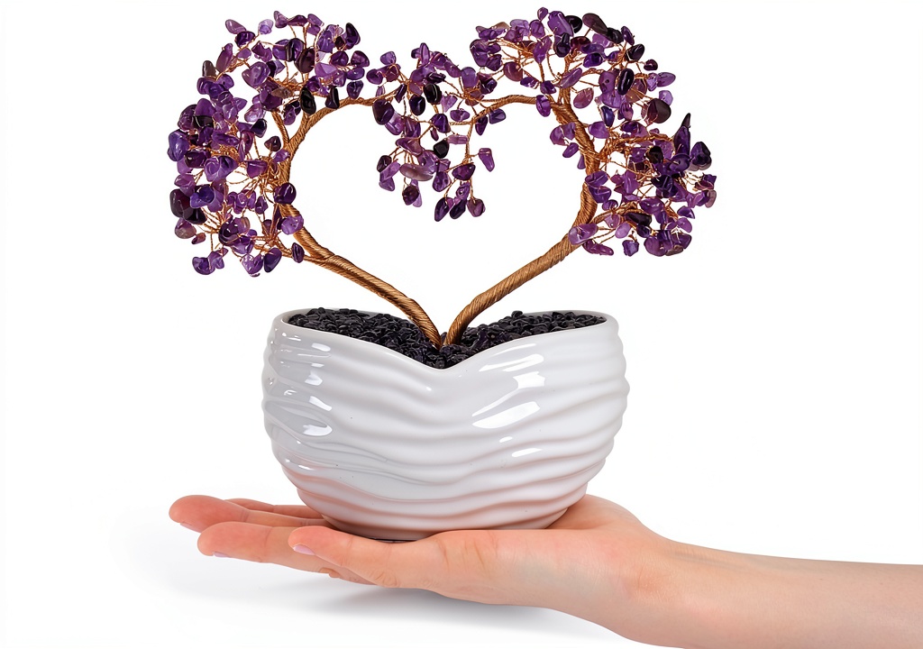 Arbre de Vie JOVIVI en améthyste sur un socle en cuivre