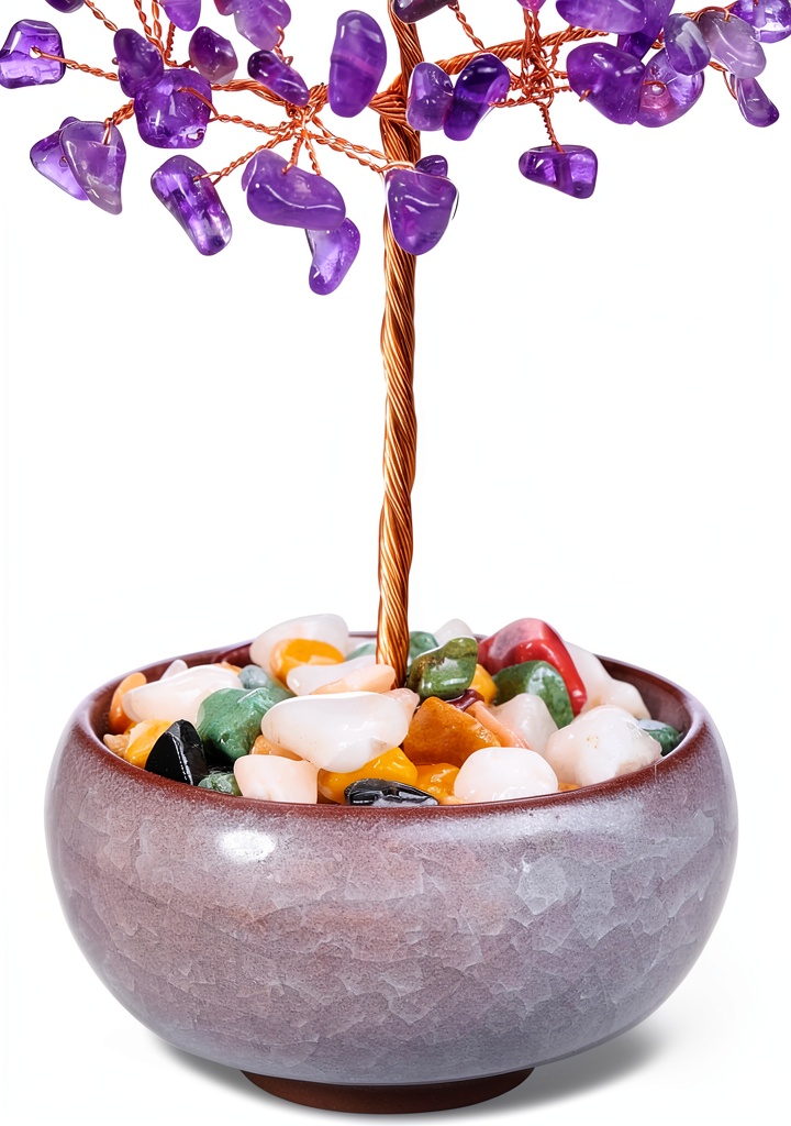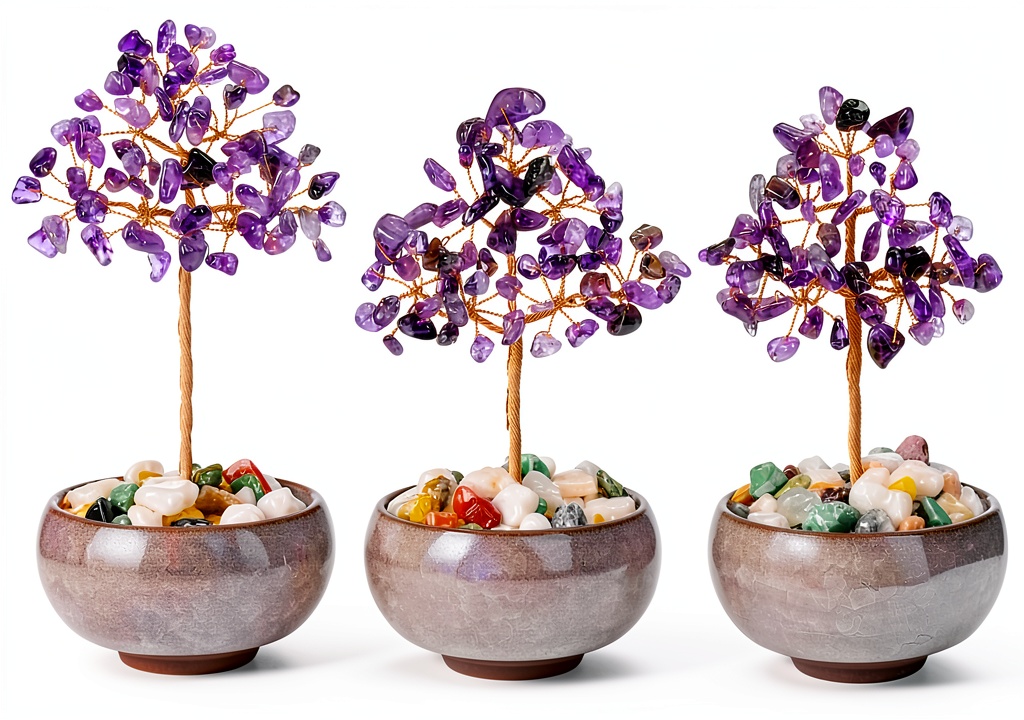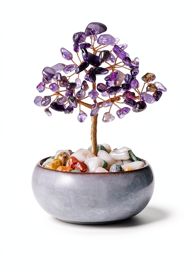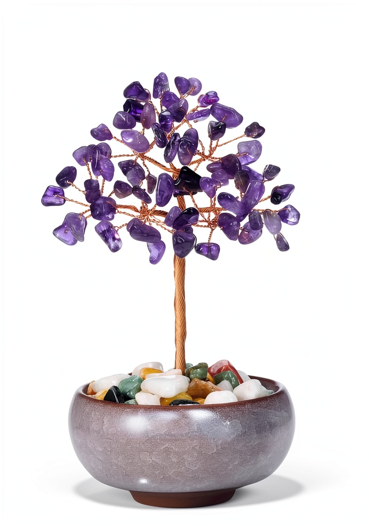 Non, chaque arbre est pré-assemblé avec de l’améthyste naturelle, mais Jovivi propose d’autres modèles avec des pierres comme le quartz rose ou la citrine.