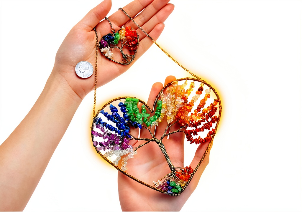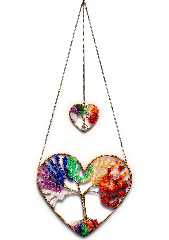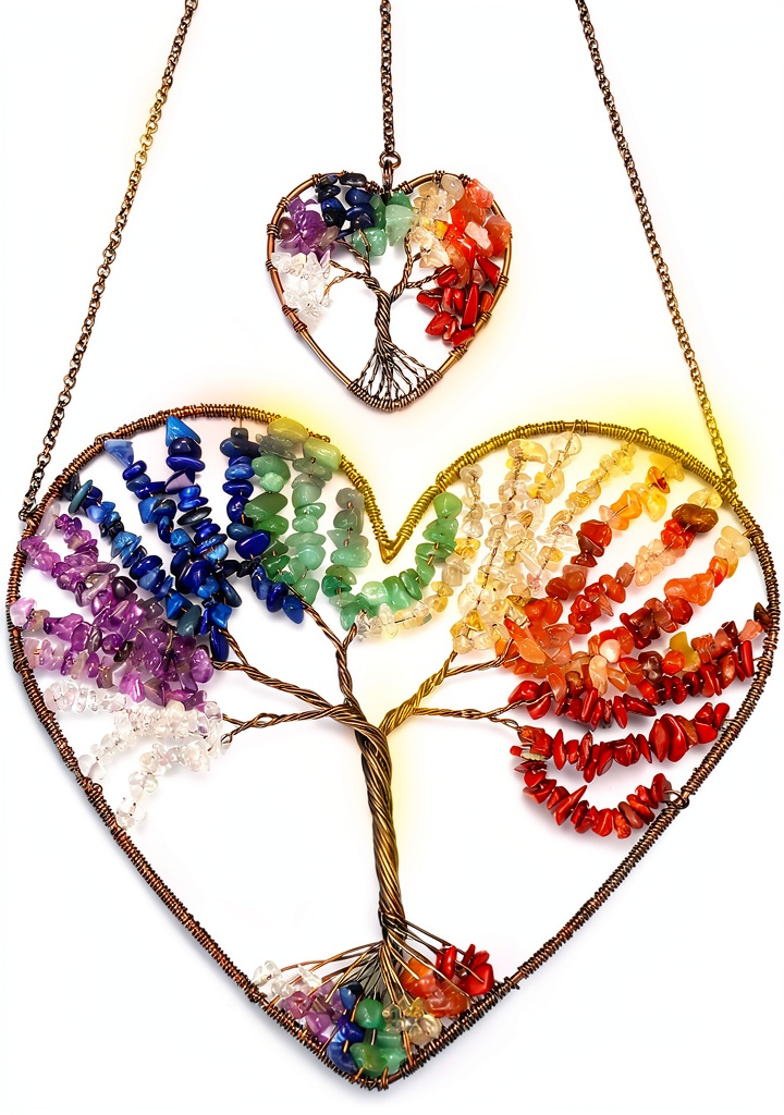 Le JOVIVI Double Heart Tree of Life Hanging Ornament est une pièce décorative unique conçue pour enrichir votre intérieur avec élégance et spiritualité. Cet ornement suspendu combine un design en forme d’arbre de vie, symbole universel de protection, de sagesse et de prospérité, avec sept cristaux de guérison des chakras soigneusement sélectionnés : quartz transparent, améthyste, sodalite, aventurine verte, citrine, agate rouge et jaspe rouge. Fabriqué en cuivre antique de haute qualité, il mesure environ 16,89 x 13,79 x 3,1 cm et pèse 132 grammes, offrant une finition durable et esthétique. Idéal pour équilibrer les énergies, il s’intègre parfaitement dans les environnements de méditation, de yoga ou de décoration Feng Shui, apportant calme et harmonie.