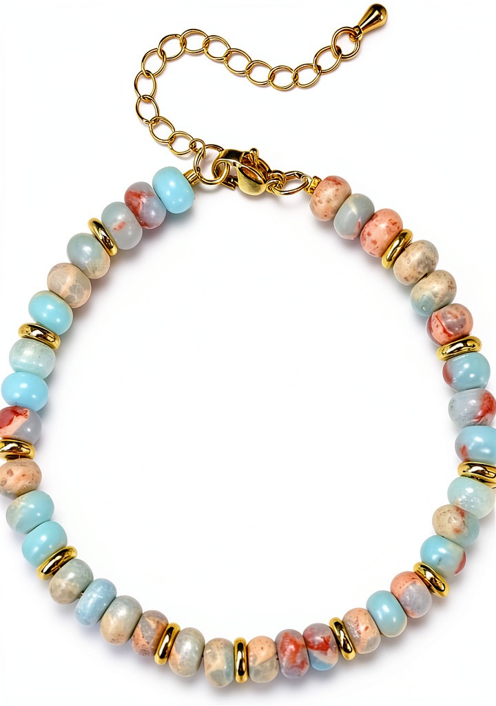 Le bracelet Jovivi pour femme est un accessoire raffiné composé de perles en pierre naturelle de 6mm, associées à une chaîne réglable en or. Conçu pour évoquer l’équilibre des chakras, ce bracelet allie esthétique et spiritualité, avec des matériaux soigneusement sélectionnés pour garantir durabilité et confort. Les perles plates en cristal offrent un design épuré, tandis que la chaîne ajustable de 8 pouces s’adapte parfaitement à tous les poignets. Idéal pour un usage quotidien, ce bijou apporte une touche d’élégance et de sérénité, avec des finitions métalliques résistantes à l’usure.