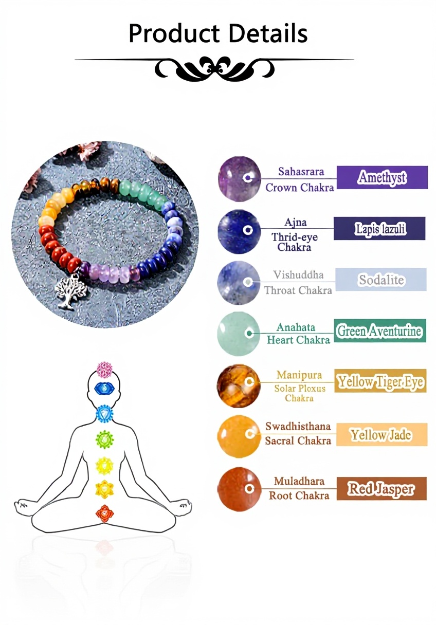 - Composé de 7 pierres chakras naturelles pour équilibrer l’énergie corporelle et spirituelle.