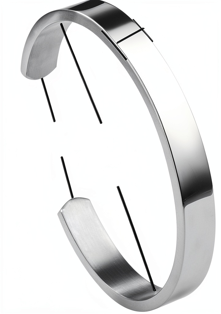 - Design jonc manchette large ouvert facilitant l’enfilage et s’adaptant aux poignets de 21-22 cm.