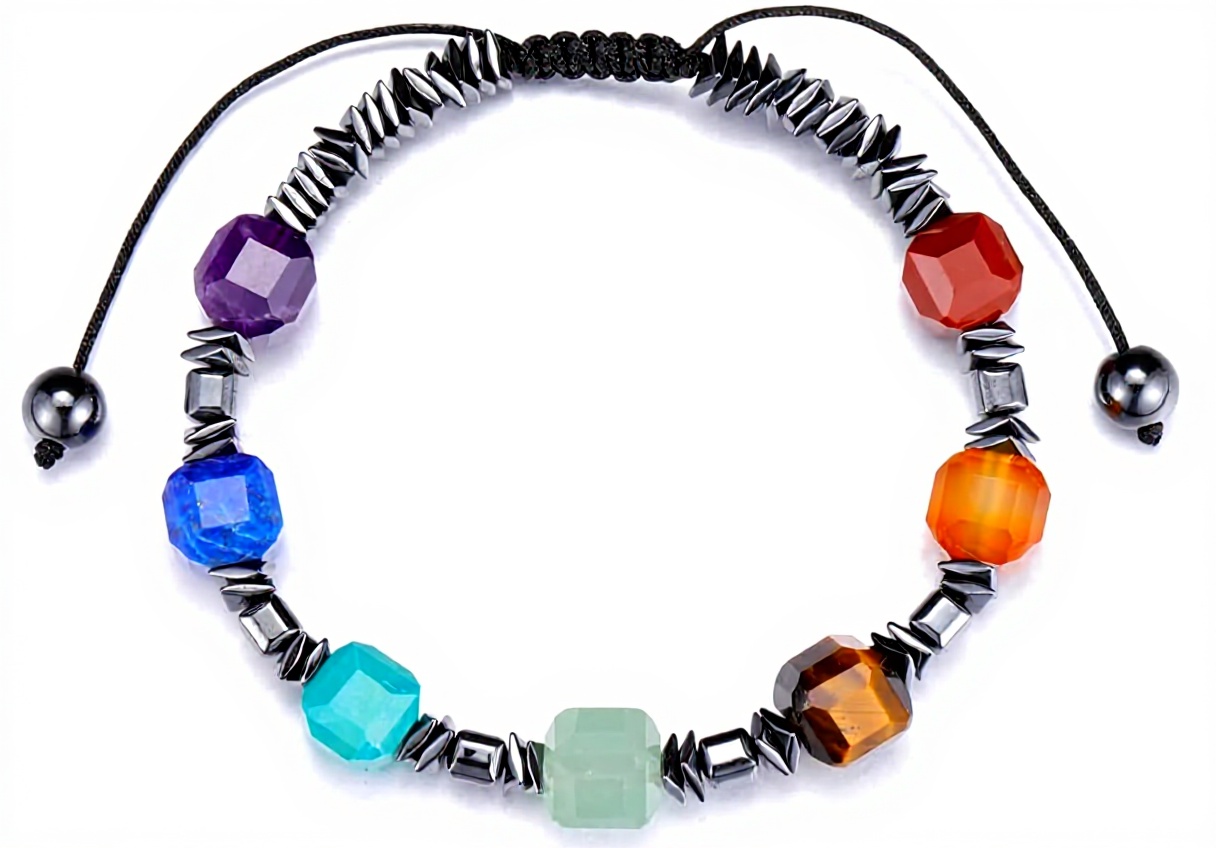 - Matériaux naturels : Pierres de chakra et hématite pour l’équilibre énergétique et la protection.
