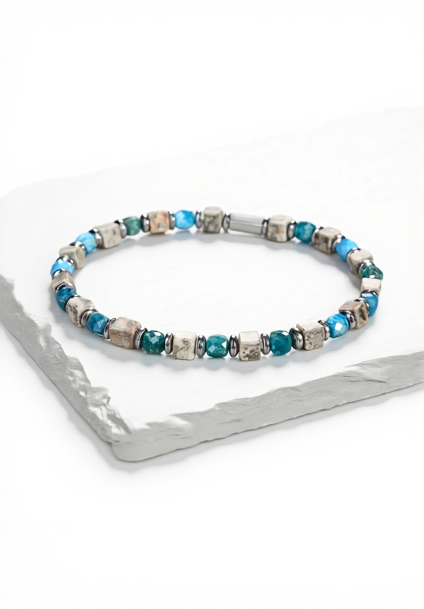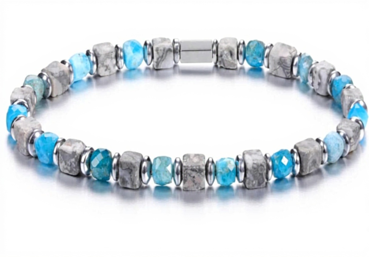 Le bracelet Jovivi est conçu avec des perles en pierre naturelle de 4 mm et des éléments en cuivre, offrant un design tressé ajustable pour s’adapter à différentes tailles de poignet. Sa circonférence intérieure de 6,8 pouces convient aux poignets jusqu’à 7,3 pouces, assurant un port confortable au quotidien. Fabriqué avec soin, ce bracelet allie esthétique et durabilité, avec des finitions soignées pour un look raffiné. Chaque pièce est unique en raison de la nature des pierres, et elle est livrée dans une pochette et un coffret Jovivi, prête à être offerte.
