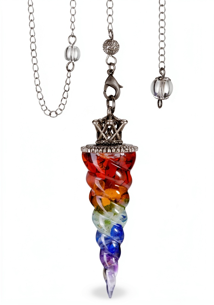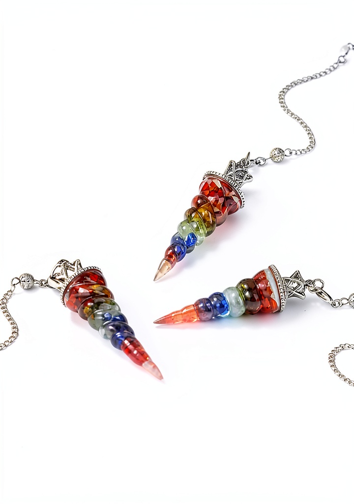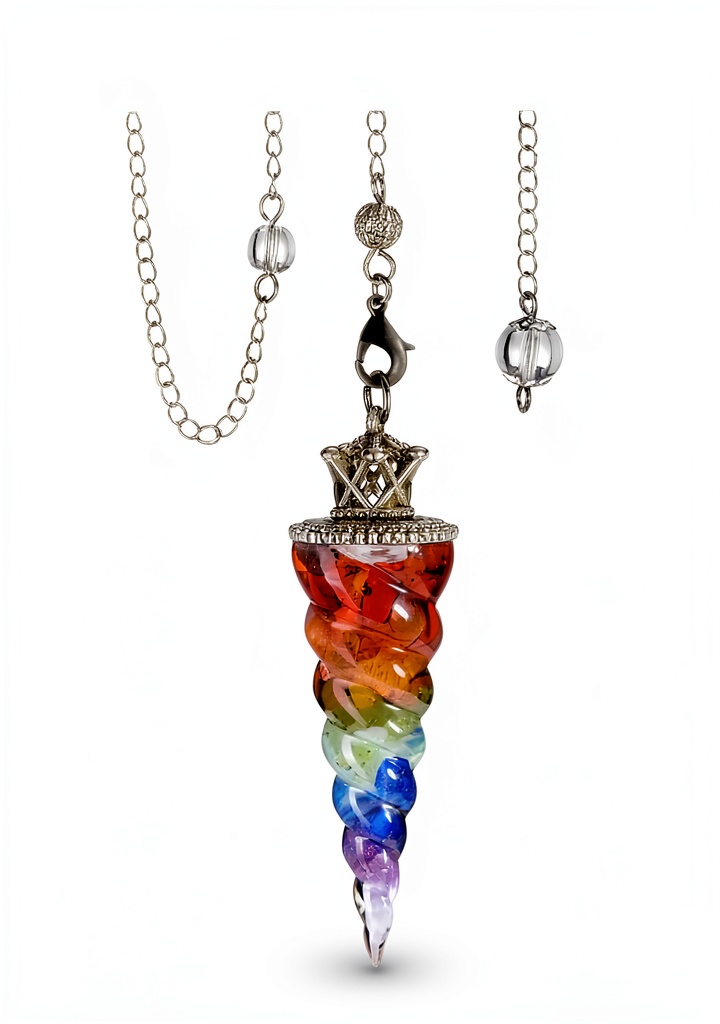 Le pendule divinatoire Jovivi est un outil de radiesthésie conçu avec 7 pierres naturelles représentant les chakras : jaspe rouge, cornaline, œil de tigre jaune, péridot, aigue-marine, lapis-lazuli et améthyste. Fabriqué en résine et cuivre, il mesure 30,5 cm de longueur totale et pèse 30,2 grammes. Chaque pierre est soigneusement polie pour un contact agréable avec la peau, favorisant une utilisation intuitive lors de la divination, du Reiki ou de la méditation. Ce pendule permet de répondre à des questions par oui ou non, d’équilibrer les énergies et d’améliorer la concentration.