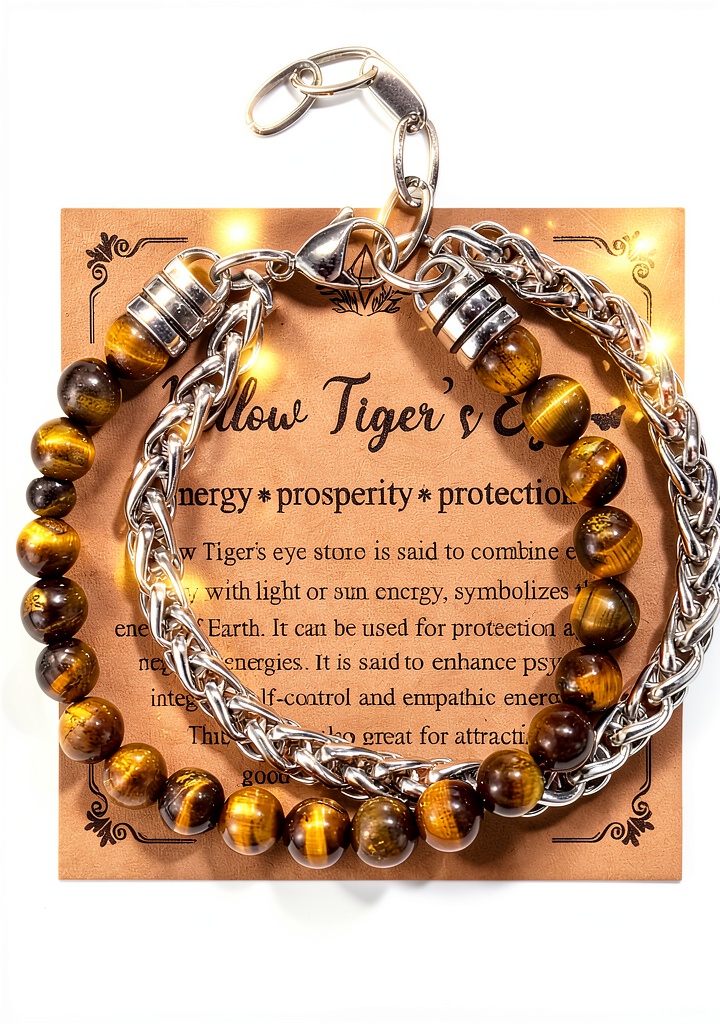 - Pierre œil de tigre naturelle favorisant la concentration et ajoutant une touche énergétique unique.